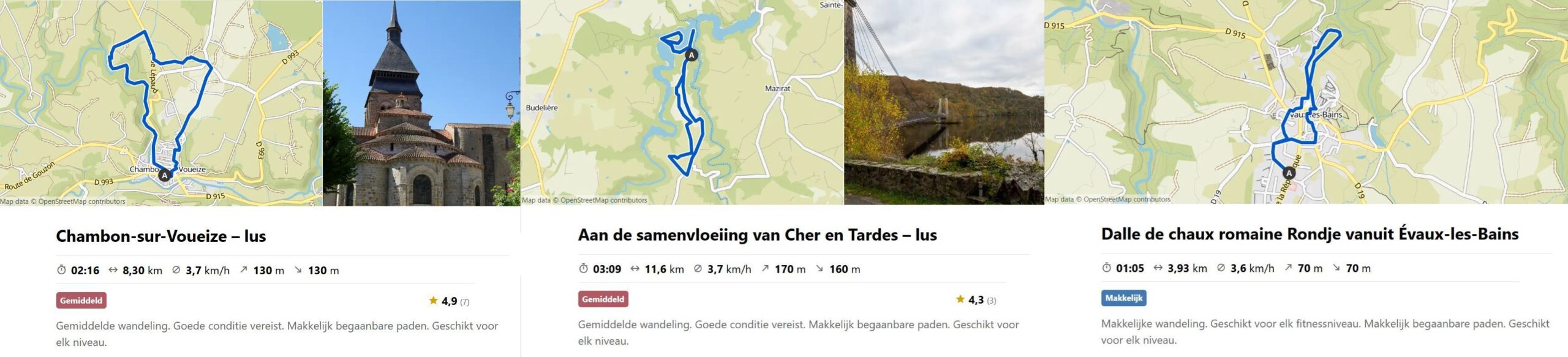 Routes vanaf FeyneraudChambonchardEvaux-les-bain en de BnB: